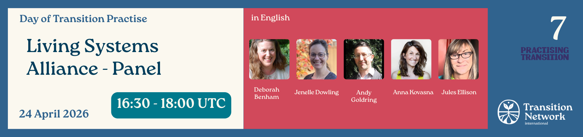Discover how communities everywhere can nurture real, lasting change in collaboration with nature. Join us for a very special 90-minute panel introducing the Living Systems Alliance, a new collaboration bringing together five pioneering organisations: Transition Network International, the Permaculture Association, Global Ecovillage Network, Kincentric Leadership, and The Biomimicry Institute.