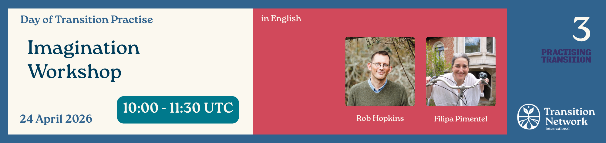 Imagination workshop: This workshop is a version of those given by Rob and Filipa, redesigned to last an hour and a half, online. The group of participants in this workshop will get a taste of what this “radical imagination” work is all about, inviting them to explore the tools shared to strengthen their work as catalysts for change.